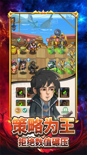 游戏采用九宫格布局的战场设计,玩家需要部署6名英雄构建防线,借助职业组合(像战士、法师、辅助这类搭配)以及阵营克制机制(主流的3+2阵营搭配)来打造战术上的优势。英雄的技能释放不受限制,支持即时的战斗操作,战斗过程能够进行加速或者直接跳过,既保证了策略层面的深度,又兼顾了操作时的便捷性。