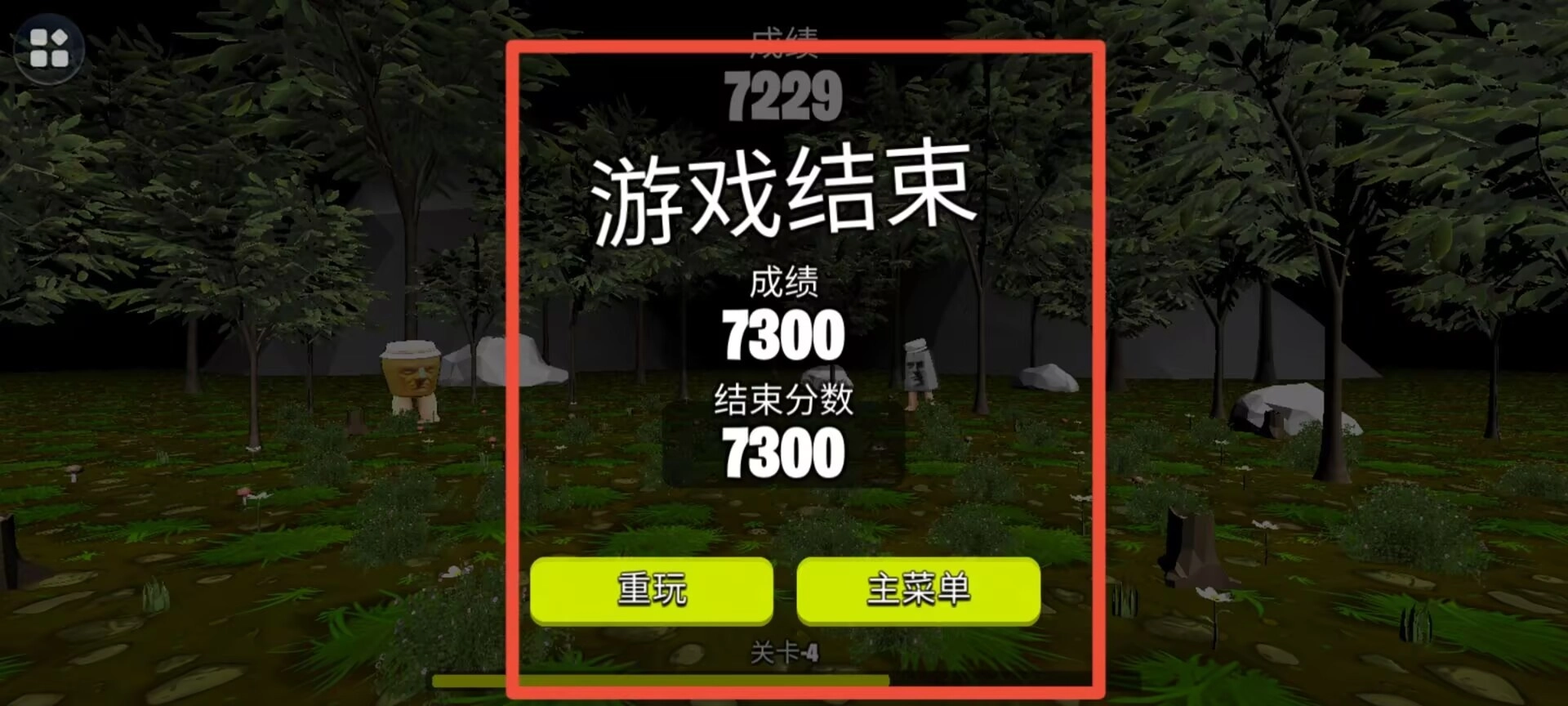 角色战败后会进入结算界面,界面上会显示最终得分和对应的评价,同时提供重新挑战以及返回主界面这两个选项供玩家选择。