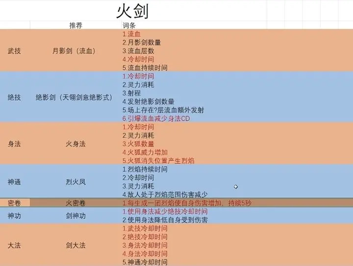 注:火密卷、剑大法、神功能一直用到毕业,不用频繁更新。