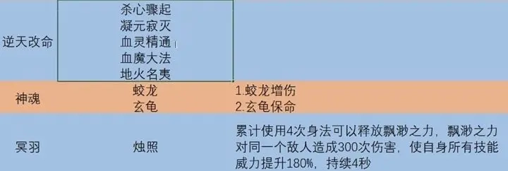 核心逆天改命能力包括:地火明夷(无需条件即可释放火属性神通)、血魔入门(具备吸血效果,且该效果可升级)、血灵入门(当法力耗尽时,能够以自身血液替代法力消耗,此功能同样支持升级)