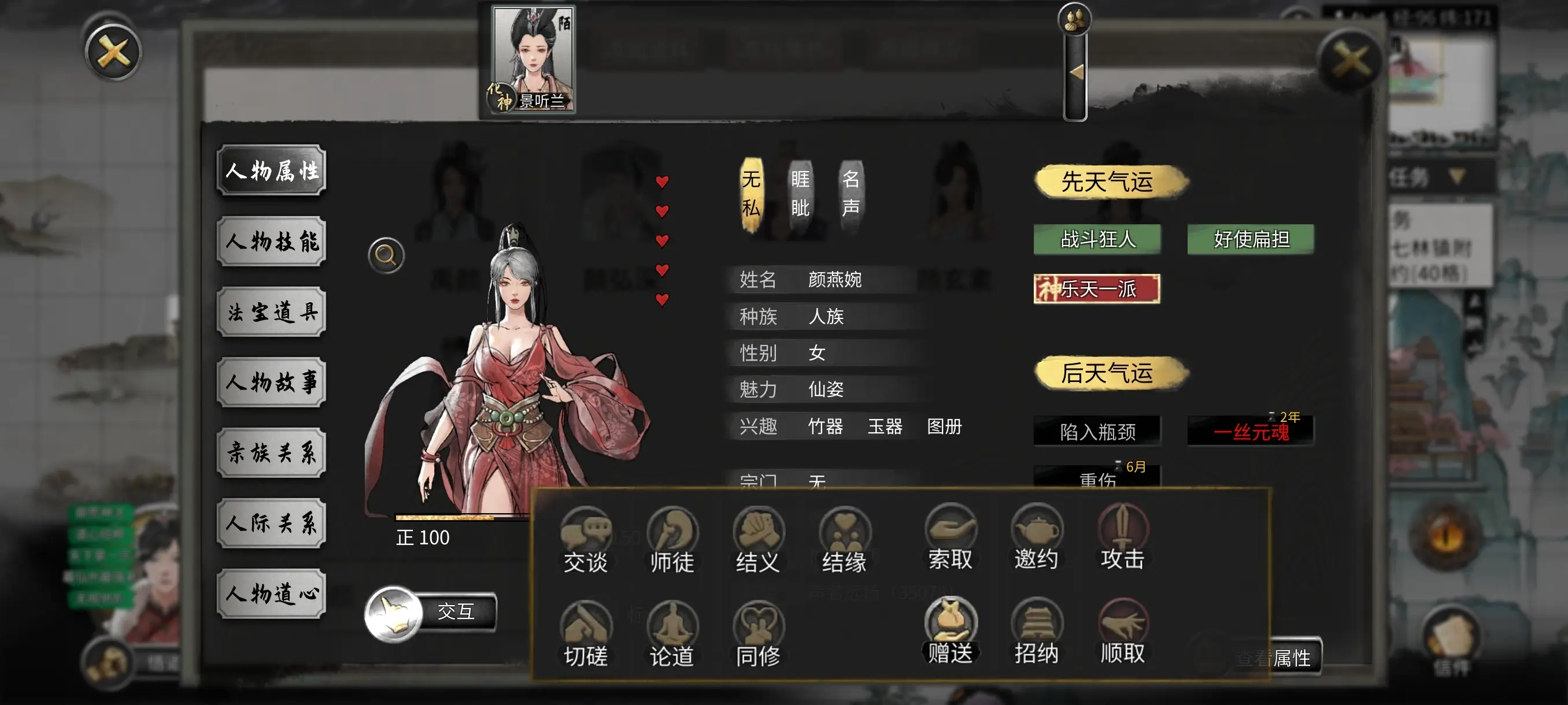 海量精品武侠角色,每个角色都有不同的初始特性。