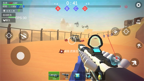 点击右下角或移动键上方的开火按钮,就能射击击毁敌方机器人或载具。