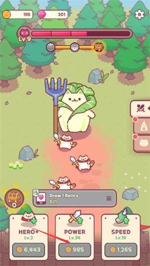 击败敌人会获得金币,玩家可通过金币给小猫升级