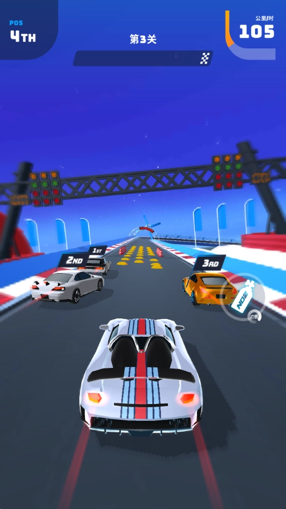 比赛开始后,长按屏幕就能加速前进,左右拖动屏幕即可转向。