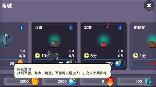 点击商店,里面有各类建筑可供建造,特别是兵营,它能让你训练更多的魔兽。