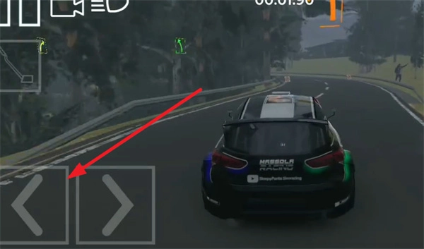 首先进入赛场后,玩家借助左侧的按键,就能让车子灵活调整行驶方向。