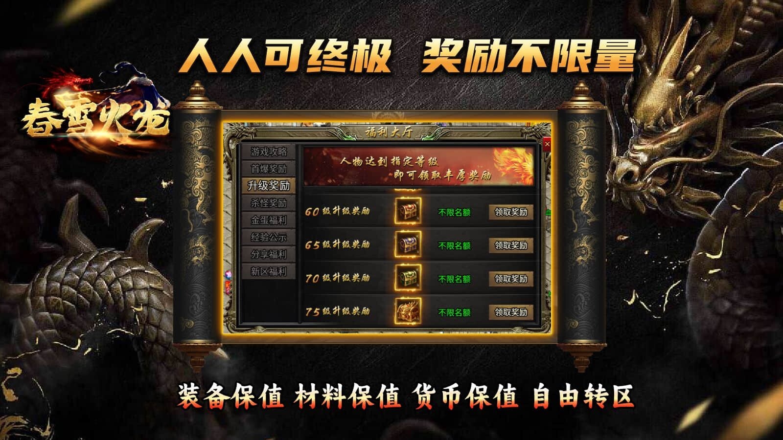 春雪火龙是一款经典的火龙版本传奇游戏,邀你开启沉浸式的战斗闯关之旅!充分发挥职业的独特特性与技能,结合战地冒险玩法展开激烈对抗,轻松闯关畅享热血激情,战斗力提升毫无压力,绝对让你大呼过瘾,快来加入这场精彩的战斗冒险吧!
