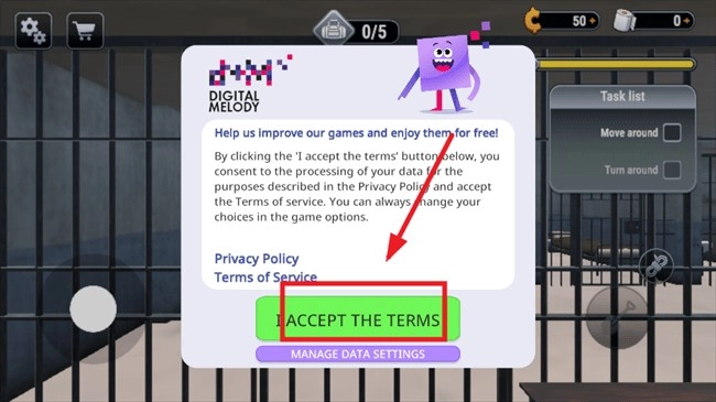 面对各种突发情况,你需要沉着冷静地制定策略,每一步都充满挑战。如果你对越狱题材游戏感兴趣,不妨加入这场刺激的冒险,开启属于你的逃生之旅!1、打开肖申克模拟器2菜单,点击同意相关协议