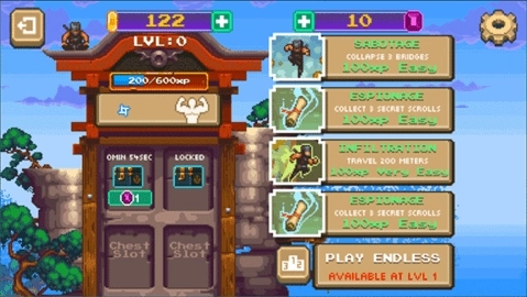2、无需复杂花哨的操作,仅需控制忍者移动、跳跃,运用简单技能,即可开启闯关之旅。