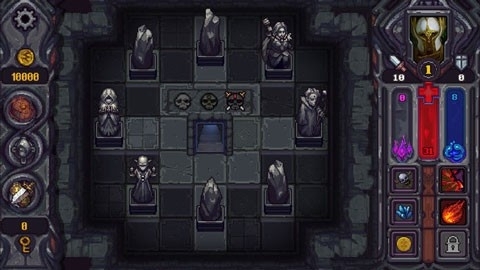 ③尸人(名字记不清了,就是那个全身黑衣的大叔):被动技能很实用,前十层基本能轻松平推。职业定位是战士,初始技能消耗3点蓝量,效果是对全场怪物造成自身攻击力一半的伤害。我个人觉得这个技能比较鸡肋,层数高了之后,如果一次翻出的怪物太多,很可能直接就翻车了,而且就算攻击力提升上去,技能伤害也还是不太可观。这个角色初始力量数值很高,初始血量也特别高(印象里有100多),可惜耐力极低,只有1点,所以前期建议不用急着加力量,可以先点几下耐力。这个角色如果信仰复仇之神或者战神,前十五层基本没什么压力,之后就要看装备道具和运气了。玩任何角色都别舍不得用技能,该释放的时候就得放。