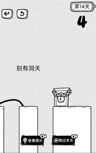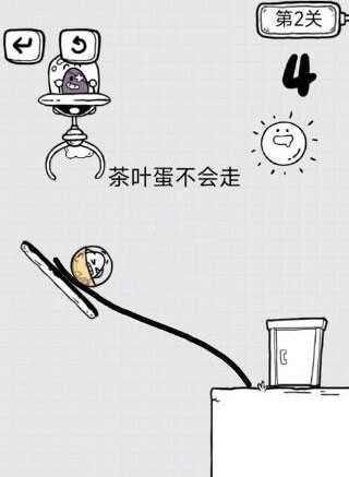 在右侧的钉子上画一条线,这条线旋转后碰到茶叶蛋,茶叶蛋就能被推到里面。