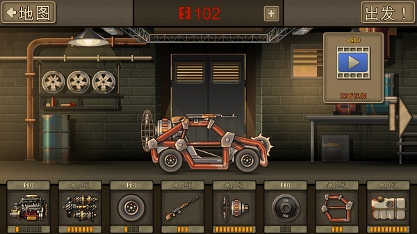 游戏的细节打磨得相当出色,升级界面里提升引擎或变速箱时,战车前端会有轻微下沉的动态反馈;行驶过程中若重量分配失衡,很容易出现后翻或前倾的情况,进而影响车速,这时就得去车库购买升级部件重新调整配重,这对保持战车稳定性至关重要。升级轮胎前后的差异也很直观,上坡时的爬坡能力会有明显变化。不过小编觉得武器系统的设计稍显不足:武器是自动发射的,单发淘汰敌人后就会报废,而且只能攻击僵尸。要是改成玩家手动触发,还能升级成更强力的火炮,同时允许攻击障碍物和建筑物的话,战斗的画面感和爽感肯定会更上一层楼。