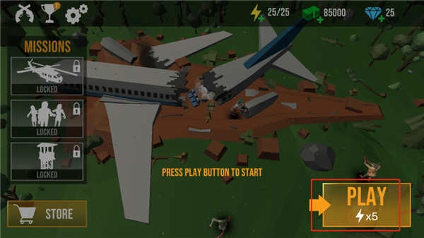 1.启动游戏后点击主界面play按钮进入关卡