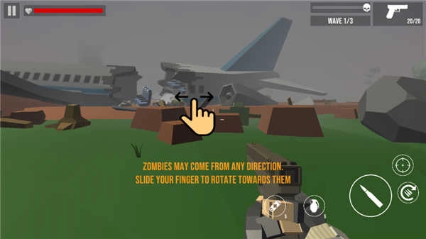 2.通过左右滑动调整枪械瞄准方位