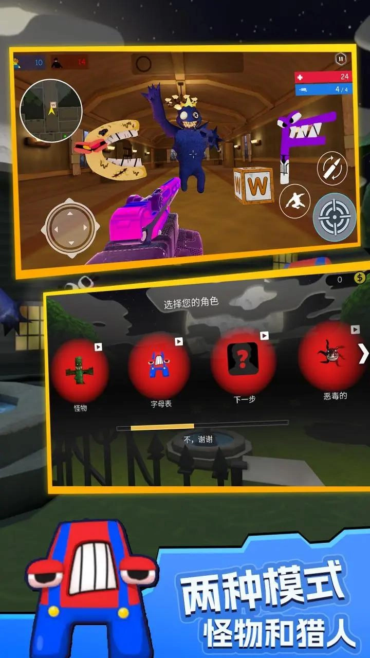 2、字母传奇枪战游戏包含多种可玩模式,玩家能在其中与不同敌人展开战斗并争取胜利。