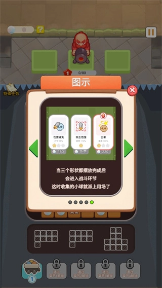 5、当三个形状都摆放妥当后,就会进入战斗阶段,此时之前收集的小球就能派上用场了。