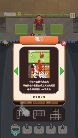 4、小球会被收集起来,彩色星星可让英雄获取经验,英雄每提升一级,攻击力就会增加10%。