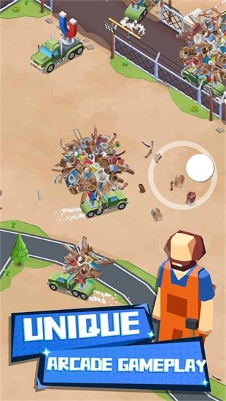 2、进入场景后,点击红色箭头所指的车辆区域,选中用于收集废料的卡车,以便为后续操作做好准备。