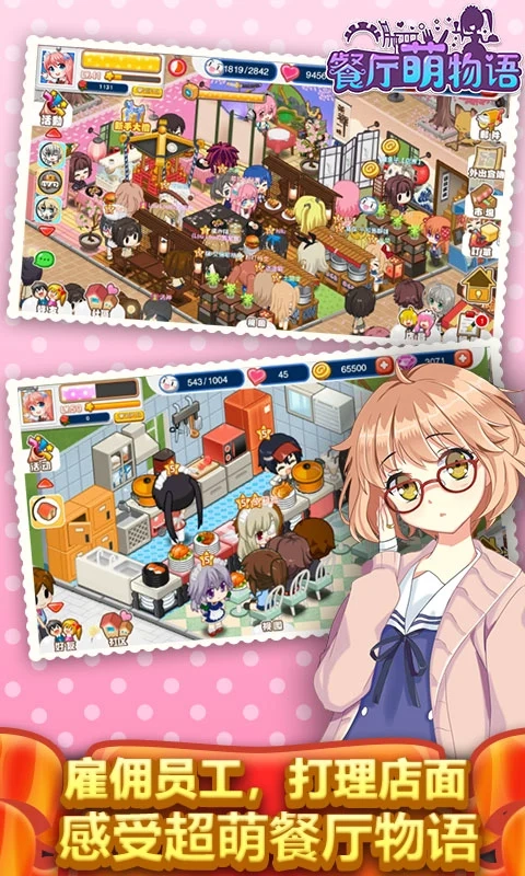 1、雇佣员工,打理店面,感受最萌餐厅物语。