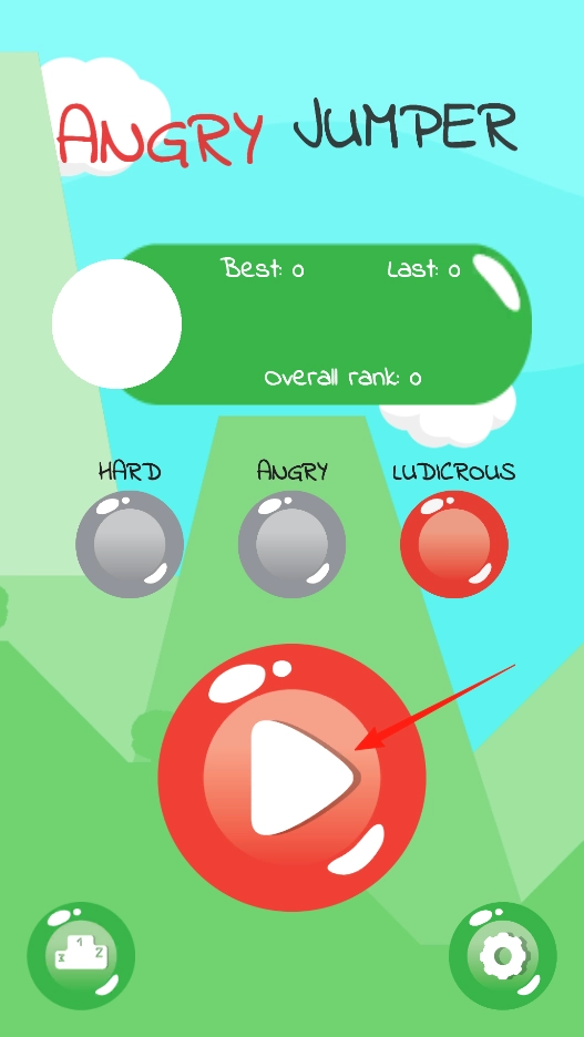 1、在愤怒的跳鸟主界面,点击红色播放按钮,选择难度后进入跳跃场景,以此开启游戏挑战,操控角色在关卡中跳跃,体验不同难度的玩法。