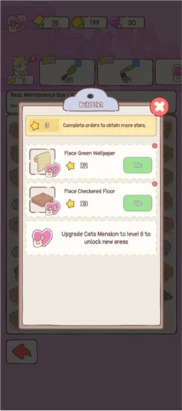 3.完成订单后得到的星星可以用于装修房子。