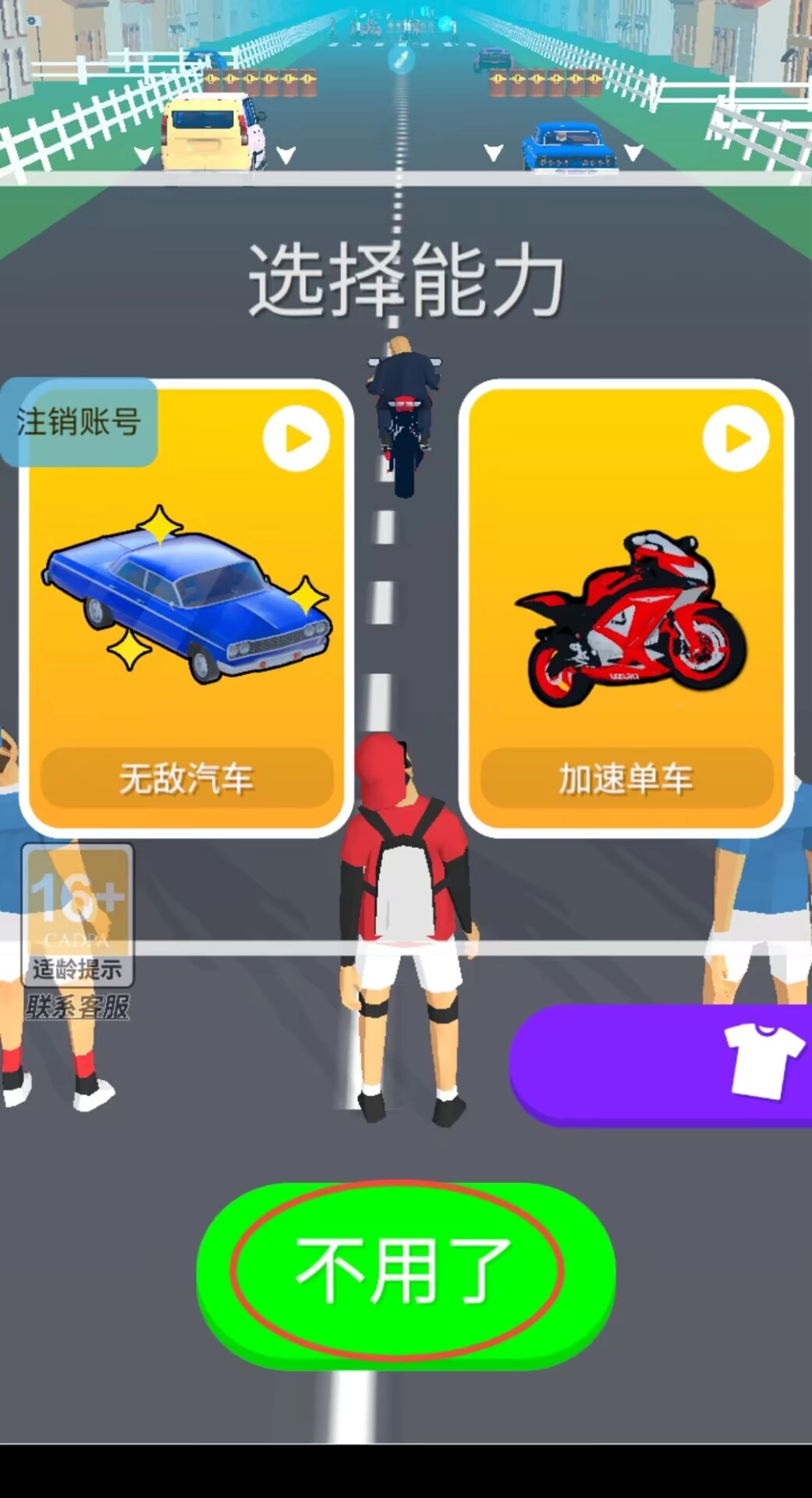 2、你可以用左右滑动的手势来调整行进的路线,快速向前划动就能实现加速跳跃,当角色接近车辆的时候会自动完成载具的切换。