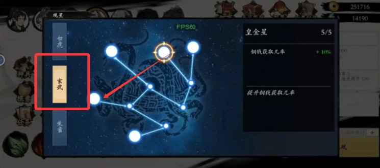 3、接着选择玄武系和皇金星这两个分支,这样能提升打钱效率,不过这两个分支需要先点亮前置技能才能解锁。