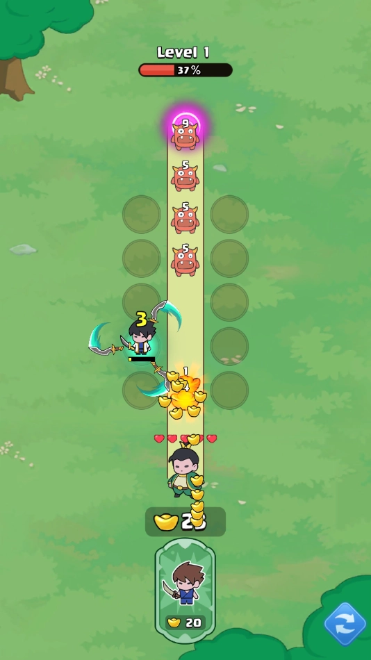 冲关大冒险是一款竖屏割草休闲游戏。玩家需助力角色升级,解锁更多强力武器装备,之后就能在地图里尽情杀敌割草,感受游戏带来的极致爽感,解压效果拉满,游戏内还融入了策略塔防玩法,不妨来试试吧。