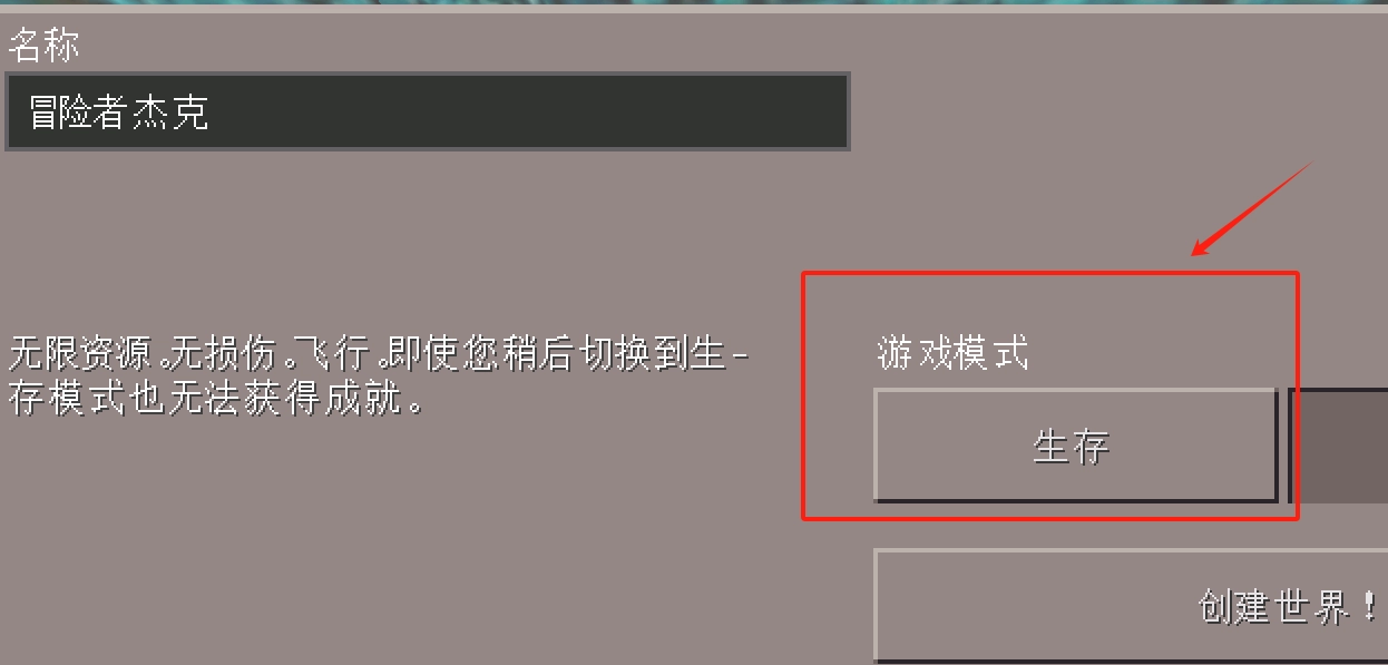 2、给冒险者杰克选好名字后,点击右下角的创建按钮,就能开启你的生存冒险之旅啦。