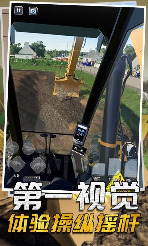 3、全视角操作系统:驾驶舱视角实时展示仪表盘数据,鸟瞰视角助力复杂地形作业规划。