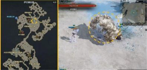 1、玩家需要先前往地图上的村庄,找到村庄附近的一棵大树,然后朝着地图正上方行进,就能看到世界boss盐巨人了。
