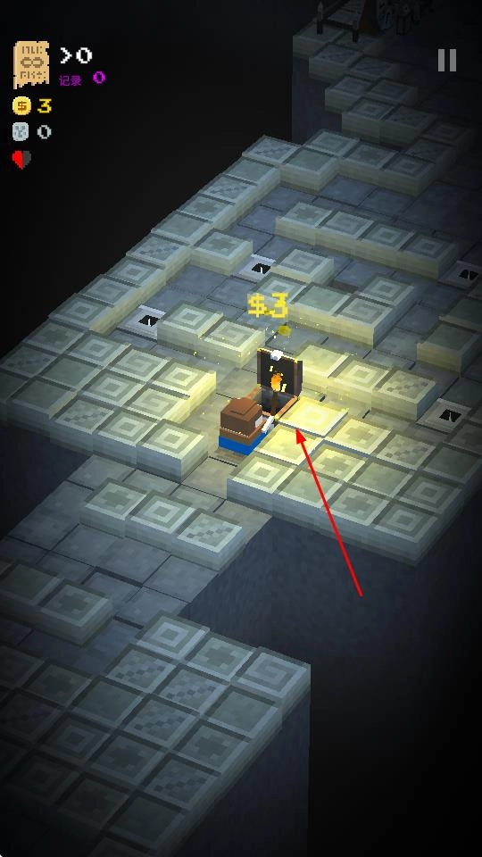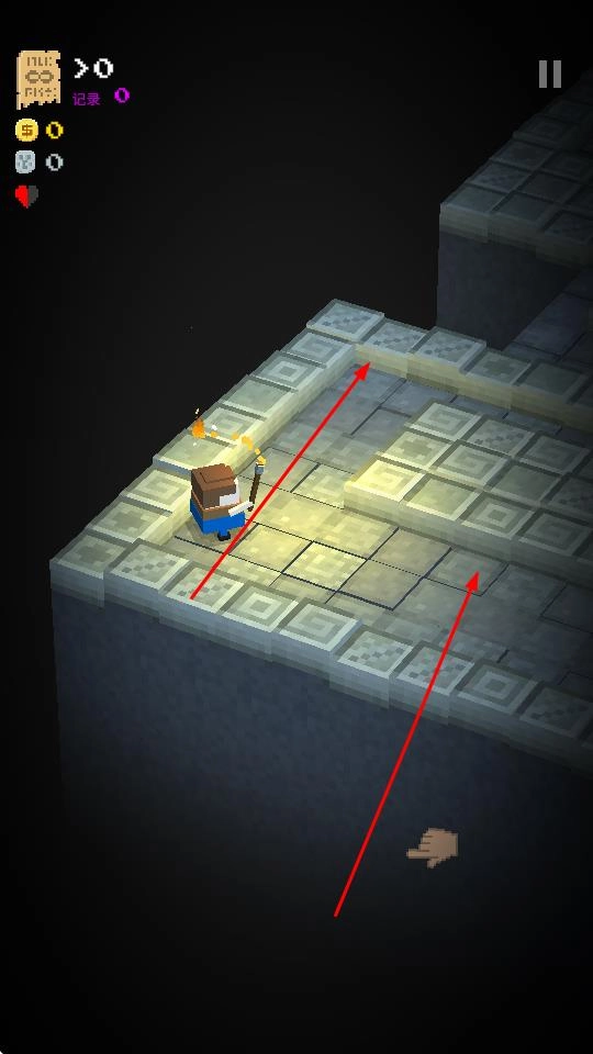 1、控制角色在像素地牢场景中移动,顺着通道前行,探索未被发现的区域,注意台阶和岔路,寻找隐藏的房间与资源。