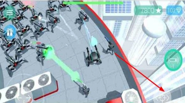 2、开启战斗后,操控角色在战场内移动,点击射击按钮对敌人发起攻击,同时注意观察能量条,待能量攒满后释放角色的专属技能,以此清理靠近自身的敌人。