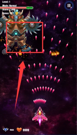 3、在与boss对战时,要留意它的攻击模式,看到红色预警区域需及时避让,危急关头合理运用特殊技能能实现清屏效果。