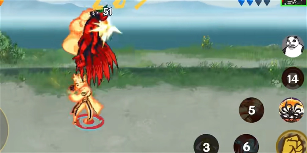 7、还能召唤回通灵兽,它不仅能对敌人造成伤害——比如这里的熊猫会砸向敌人,还可以让忍者获得霸体状态。