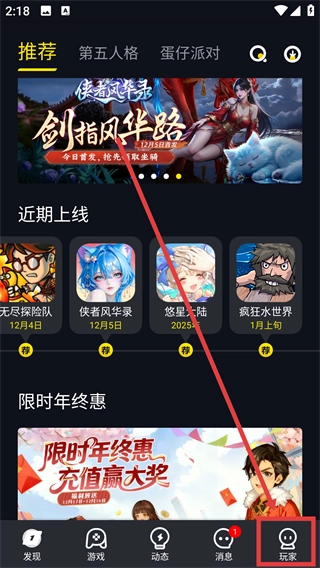 1、在应用首页点击底部的【玩家】选项,即可进入个人功能页面,查看各类游戏相关的服务与功能。