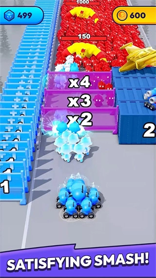 3、谨慎避开各类具有危险性的障碍物,它们可能导致团队成员数量减少,要持续借助加成效果来增殖并扩大军队规模。