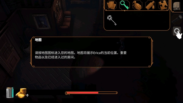 6、使用皇冠钥匙开启一楼楼梯左边的门,通过初始关卡后,即可进入鬼屋核心区域展开探索。