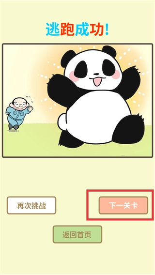 2、帮助熊猫逃离动物园,巧妙避开管理员,合理搭配并使用道具,快速完成闯关。