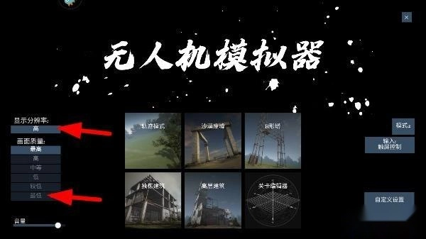 1、在本站安装好无人机模拟器后,启动游戏,可对画质、分辨率等参数进行设置;