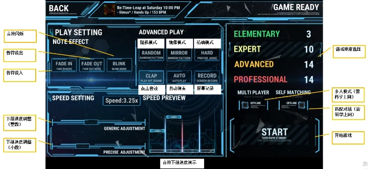-内容类型丰富多元,涵盖不同难度模式,以及随机、镜像等特色玩法,搭配歌曲解锁机制助力玩家循序渐进提升