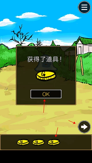 3、收集完金币后,点击屏幕右侧的箭头,即可进入下一个场景。
