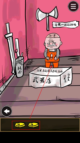 4、去武器商店把刚得到的四个金币都交给老板,让他帮忙打造圣剑。