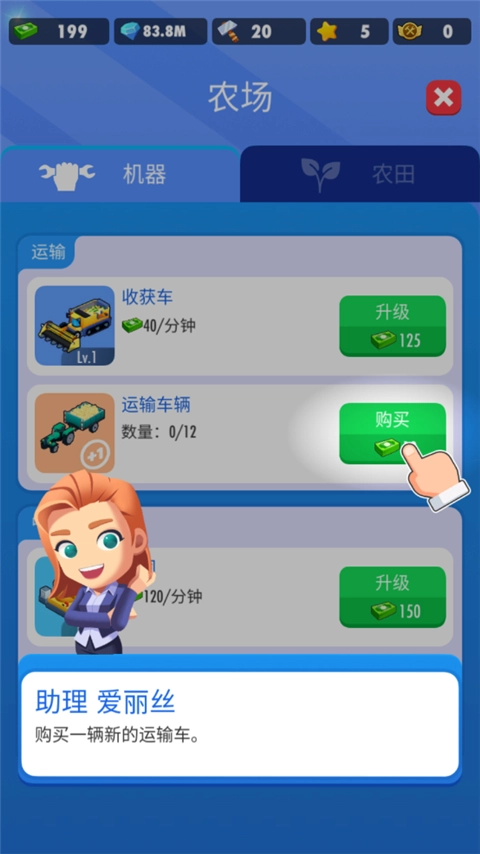 -点击“机器”-“运输”,解锁并购买一辆叉车;