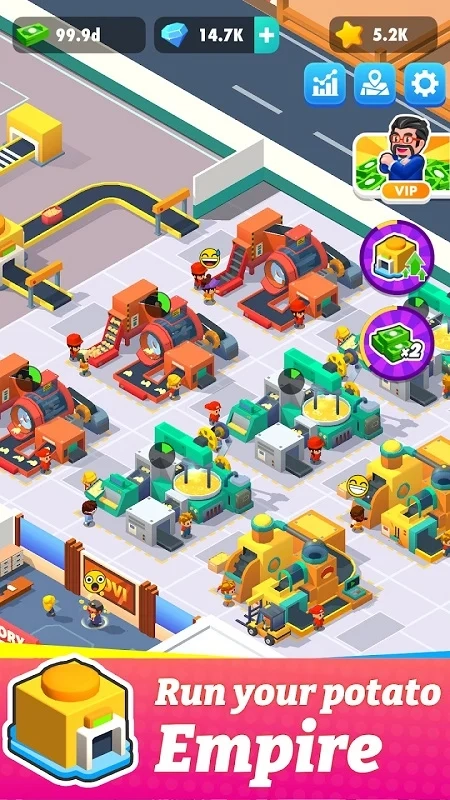 《土豆工厂大亨》是一款画风清新的模拟经营游戏,玩家将白手起家运营一家土豆工厂。你需要亲自栽种土豆、合理调配资源、搭建生产线,制作出土豆片、薯条等多样产品,再借助市场营销拓展客户规模,最终达成从农场种植到工厂生产、从产品产出到利润获取的完整商业循环。