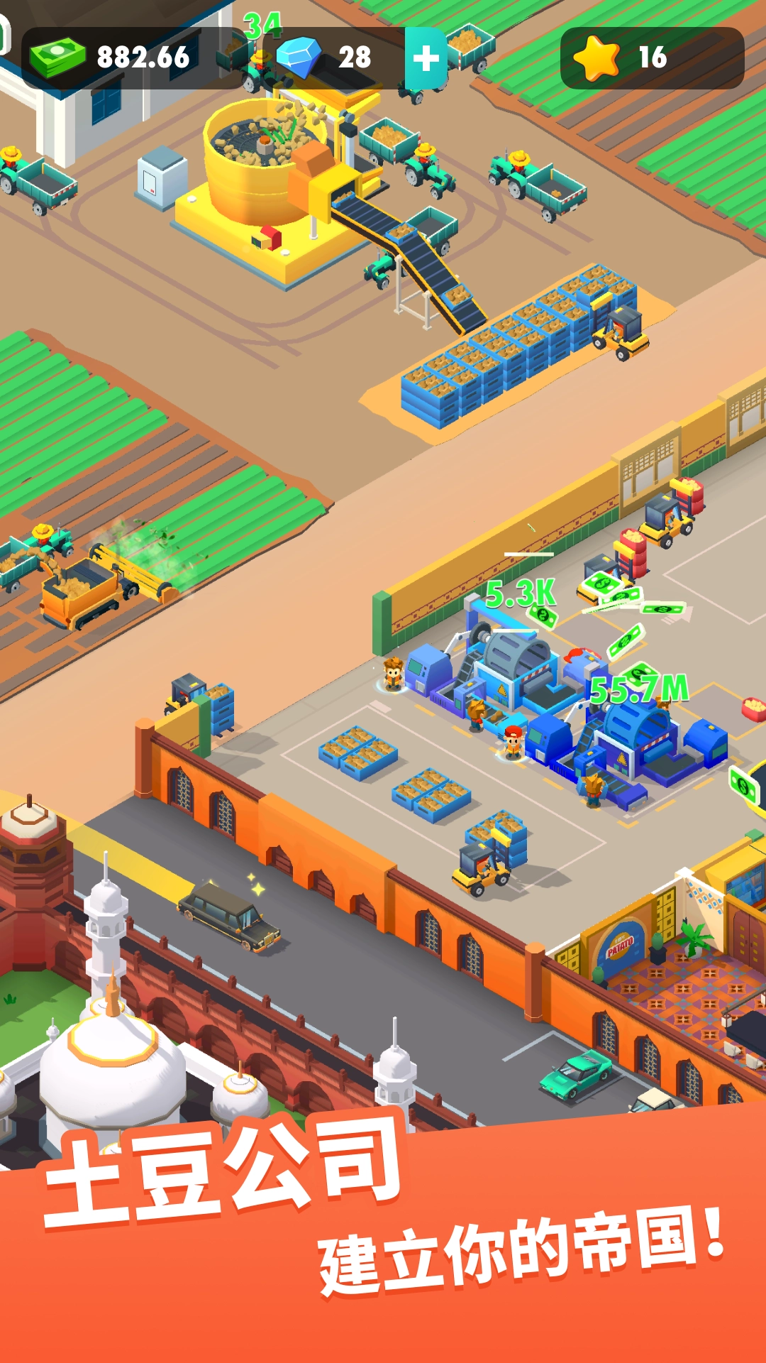当经营进入特定阶段,就能解锁全新工厂,进一步探索更多土豆产品的品类,从而达成更高的收益目标。