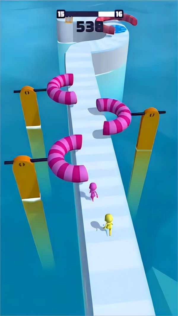 1.操控你的橡皮人持续跨越障碍向前疾驰,超越与你同台竞技的对手,以更快的速度冲向终点线。