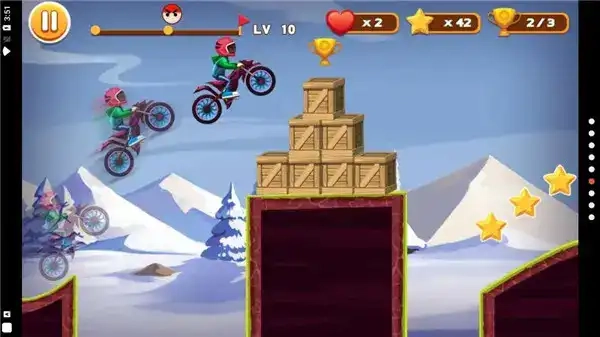 1、参与这场紧张刺激的摩托车特技竞赛,体验游戏所带来的无穷乐趣。