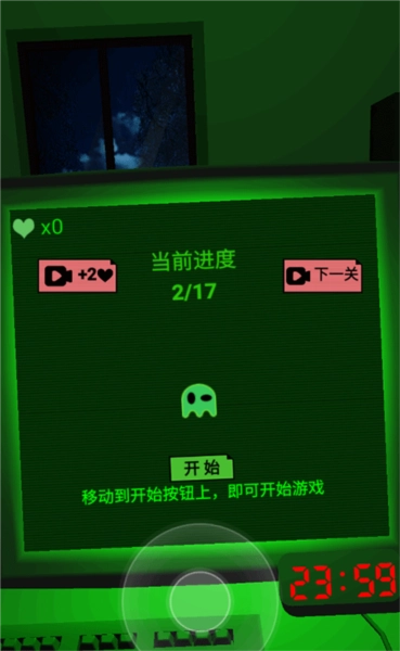 1、进入游戏后,把幽灵移到开始按钮处,就能启动游戏了。