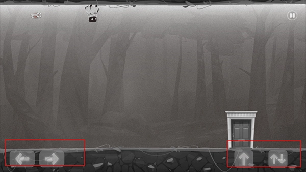 3、接着点击中间的播放按钮就能直接进入游戏,左侧的按键用于移动,右侧第一个按键是跳跃,第二个按键可实现重力反转,借助它你就能在天花板上行走了。